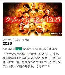 Eテレでも最高のクラシック音楽が聴けて幸せです♪