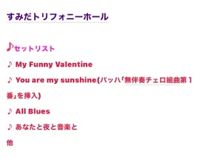 ソロの途中では、ナント!ユーアーマイサンシャインからの〜バッハ作曲の無伴奏チェロ組曲1番(G dur)を弾いてくれてビックリ!!