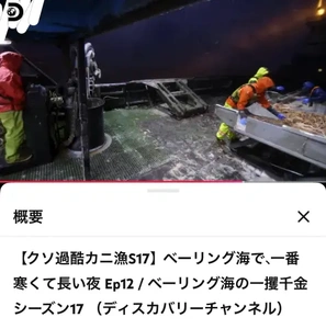 極寒のベーリング海の七転八倒する荒波を乗り越え、カニの大量捕獲を狙う超ワイルドな男達のリアルな現場。