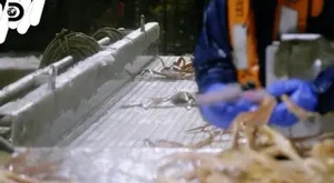 極寒過ぎてリミッターが外れたらこうなるのか?カニが入った仕掛けのカゴに大量のカニが捕獲されているのを見て、ワーオ!!とテンション高く雄叫びを上げて喜ぶ船員たち笑