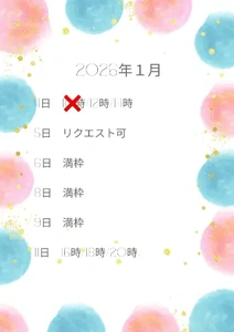 1月上旬埋まりつつあるのでリクエストしてくださる方はお早めに〜