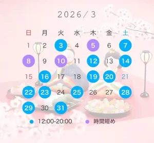 14時以降ご案内可能ですので3月の姫予約もお待ちしております♀