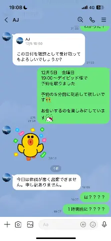 突然予約の1時間前に体調が悪くなったみたいです。確実に嘘ですo(^▽^)o
