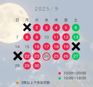 10月の出勤予定もできたので