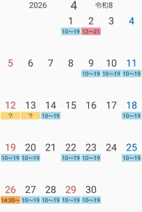 仮予定ですが4月の出勤可能日です