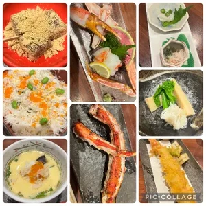 たらば蟹のお刺身絶品でした蟹ご飯も美味しくて1人で1つ食べきれないから3人前をみんなでシェアして2人前をお待ち帰りにしてもらいました♪