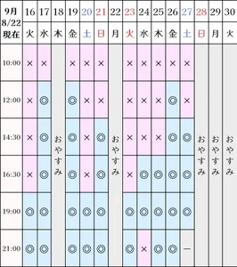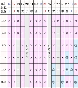 ?空き状況(8/22現在)
