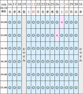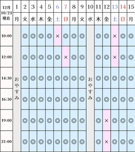 ご希望日時、ご予約名、お電話番号をご連絡ください