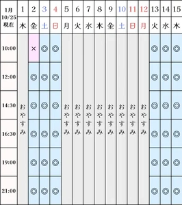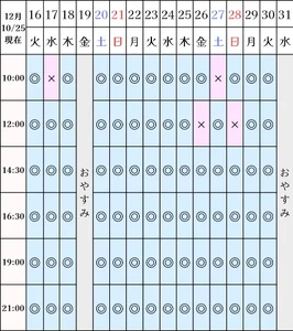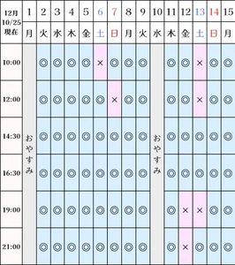 ご希望日時、ご予約名、お電話番号をご連絡ください