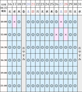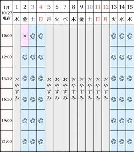 なお、12月、1月は予定が変更となる可能性がございます