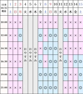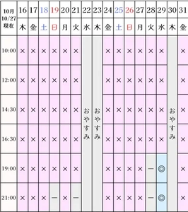 ?空き状況(10/27現在)