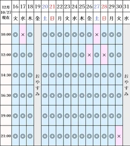ご希望日時、ご予約名、お電話番号をご連絡ください