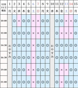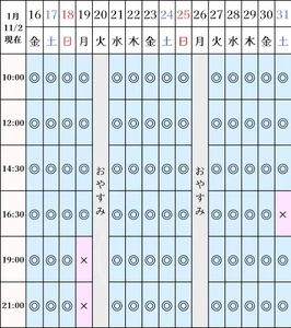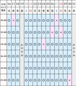 ご希望日時、ご予約名、お電話番号をご連絡ください