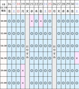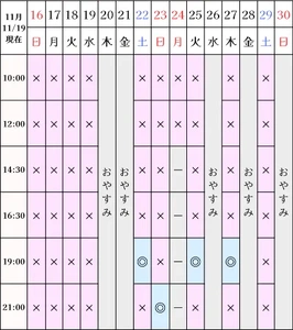 ?空き状況(11/19現在)