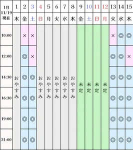 本日現在の1月末までの空き状況です