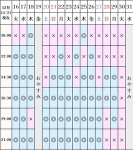 ?空き状況(11/27現在)