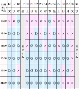 ・ご希望日時、ご予約名、お電話番号をご連絡ください