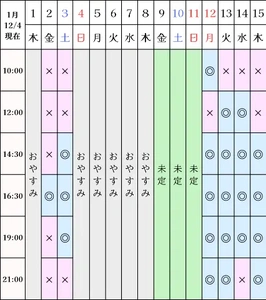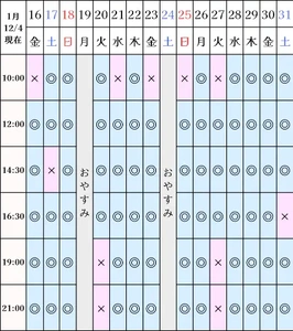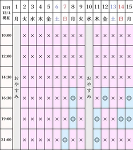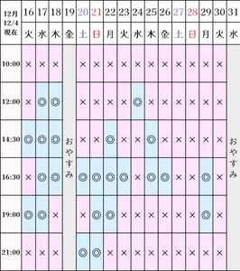 空き状況(12/4現在)