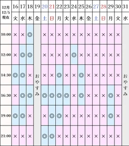 空き状況(12/5現在)