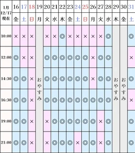 空き状況(12/17現在)