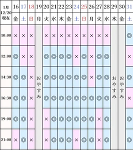 空き状況(12/20現在)