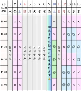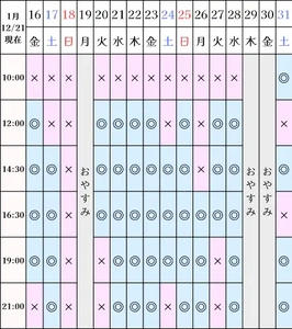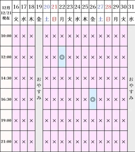 12/21の空き状況です