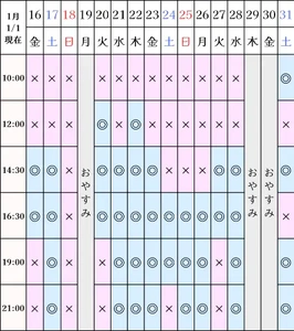 空き状況(1/1現在)
