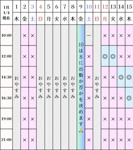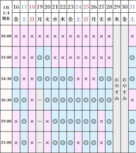 空き状況(1/4現在)