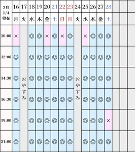 現在の空き状況です