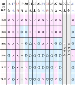 シティヘブンのネット予約の空き枠は、最新でありません
