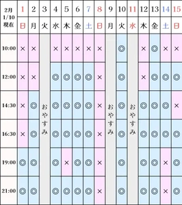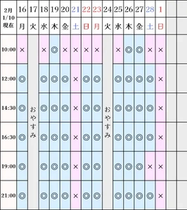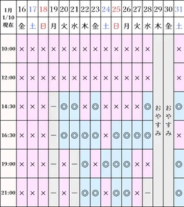 空き状況(1/10現在)