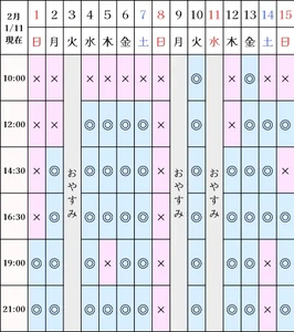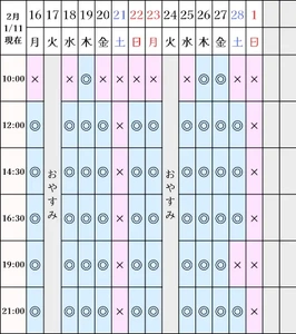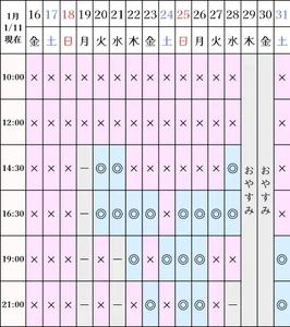 空き状況(1/11現在)