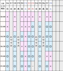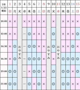 空き状況(1/23現在)