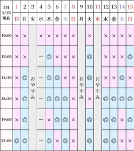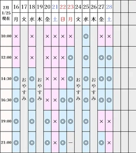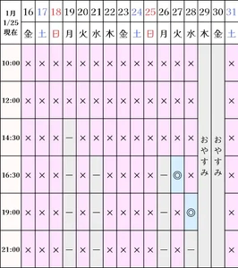 空き状況(1/25現在)