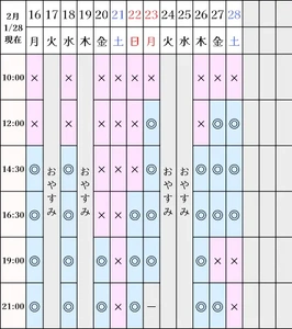 空き状況(1/28現在)