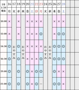 空き状況(1/29現在)