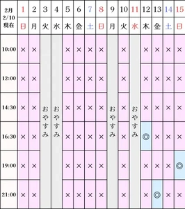 キャンセル2/12 16:30