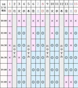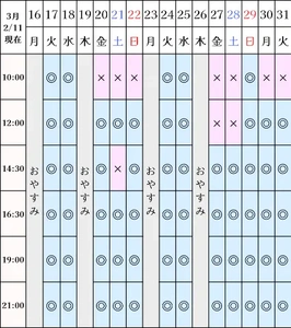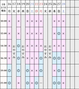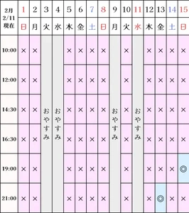 空き状況(2/11現在)