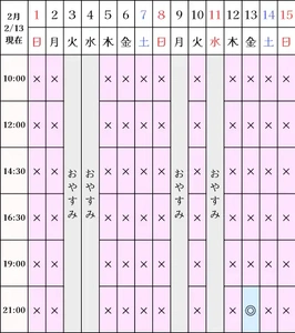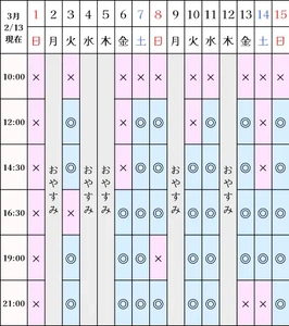 空き状況(2/13現在)