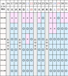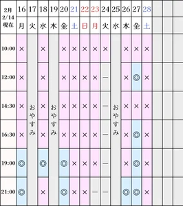 空き状況(2/14現在)