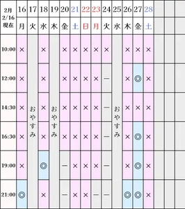 空き状況(2/16現在)