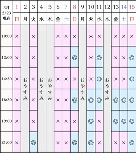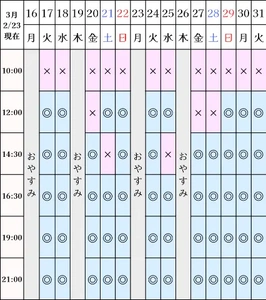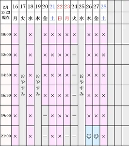 空き状況(2/23現在)