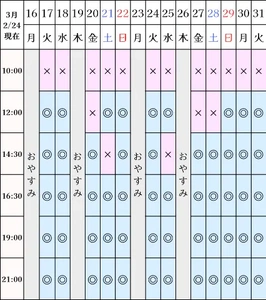 空き状況(2/24現在)