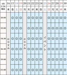 ・ご希望日時、ご予約名、お電話番号をご連絡ください