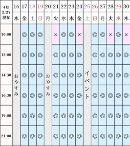 ・ご希望日時、ご予約名、お電話番号をご連絡ください