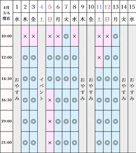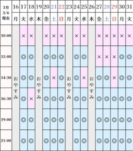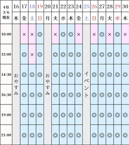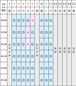 ※両親がともに入院等しているため、急遽、お休みに変更する可能性があります