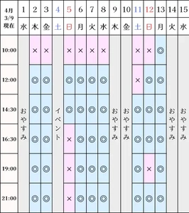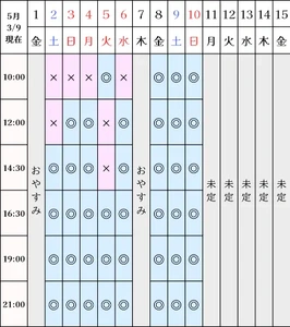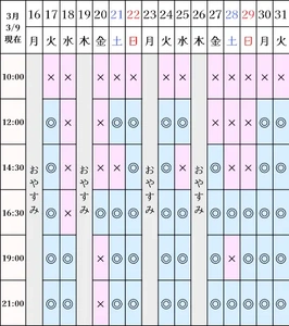 空き状況(3/9現在)