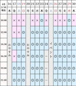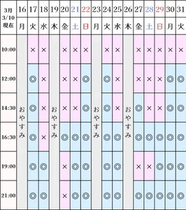 空き状況(3/10現在)