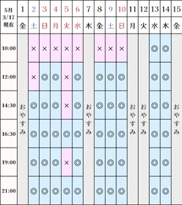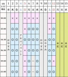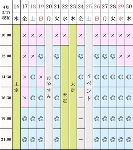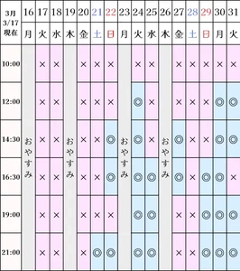 空き状況(3/17現在)