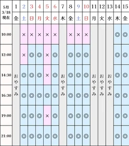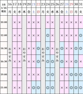 空き状況(3/18現在)
